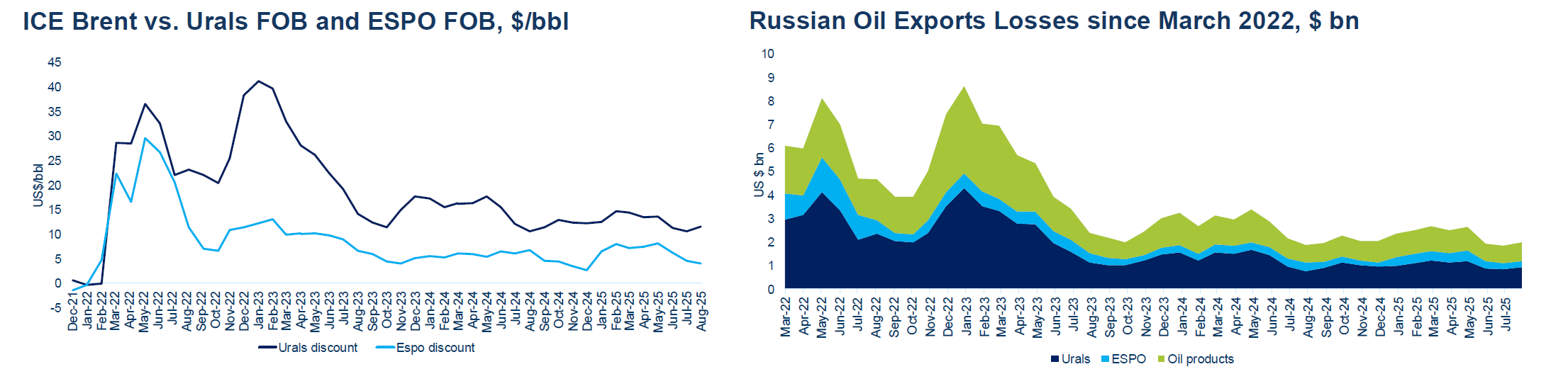 2025. gada oktobrī ASV Ārvalstu aktīvu kontroles birojs (OFAC) noteica jaunas sankcijas pret Rosneft un Lukoil – diviem lielākajiem Krievijas naftas uzņēmumiem. Kā norāda B. Hilgenstoks, sākotnējā ietekme būs būtiska, jo OFAC skaidri signalizē par sekundāro sankciju risku ārvalstu bankām. Lai saglabātu eksporta apjomus, Krievijai nāksies piedāvāt vēl lielākas atlaides jau tā zemajai naftas cenai.